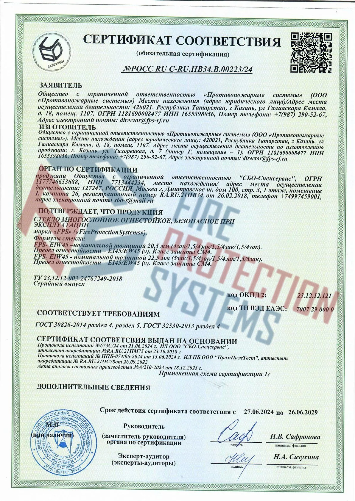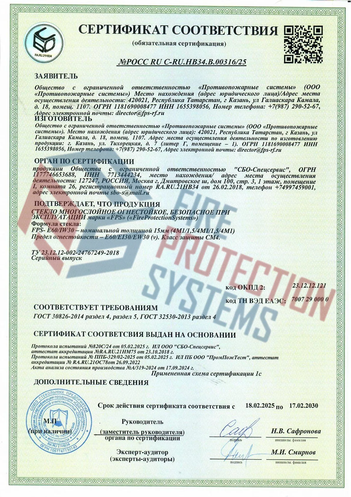 Противопожарное стекло в Рязани от производителя «Fire protection Systems». Мы изготавливаем многослойные стеклопакеты из огнеупорного противопожарного стекла. В нашем каталоге вы найдёте противопожарные стёкла по ГОСТу EIW15-EIW60 с огнестойкостью от 15 до 60 минут. Изготовление противопожарных стёкол на заказ стандартных и нестандартных размеров. Продукция сертифицирована и доставляется по всей России. Узнайте как купить противопожарное стекло от производителя у специалиста компании «Fire protection Systems».