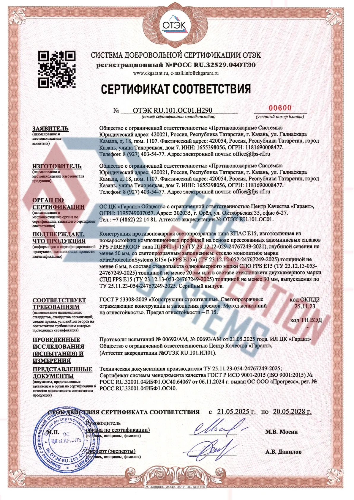Противопожарные светопрозрачные перегородки отличаются следующими свойствами: